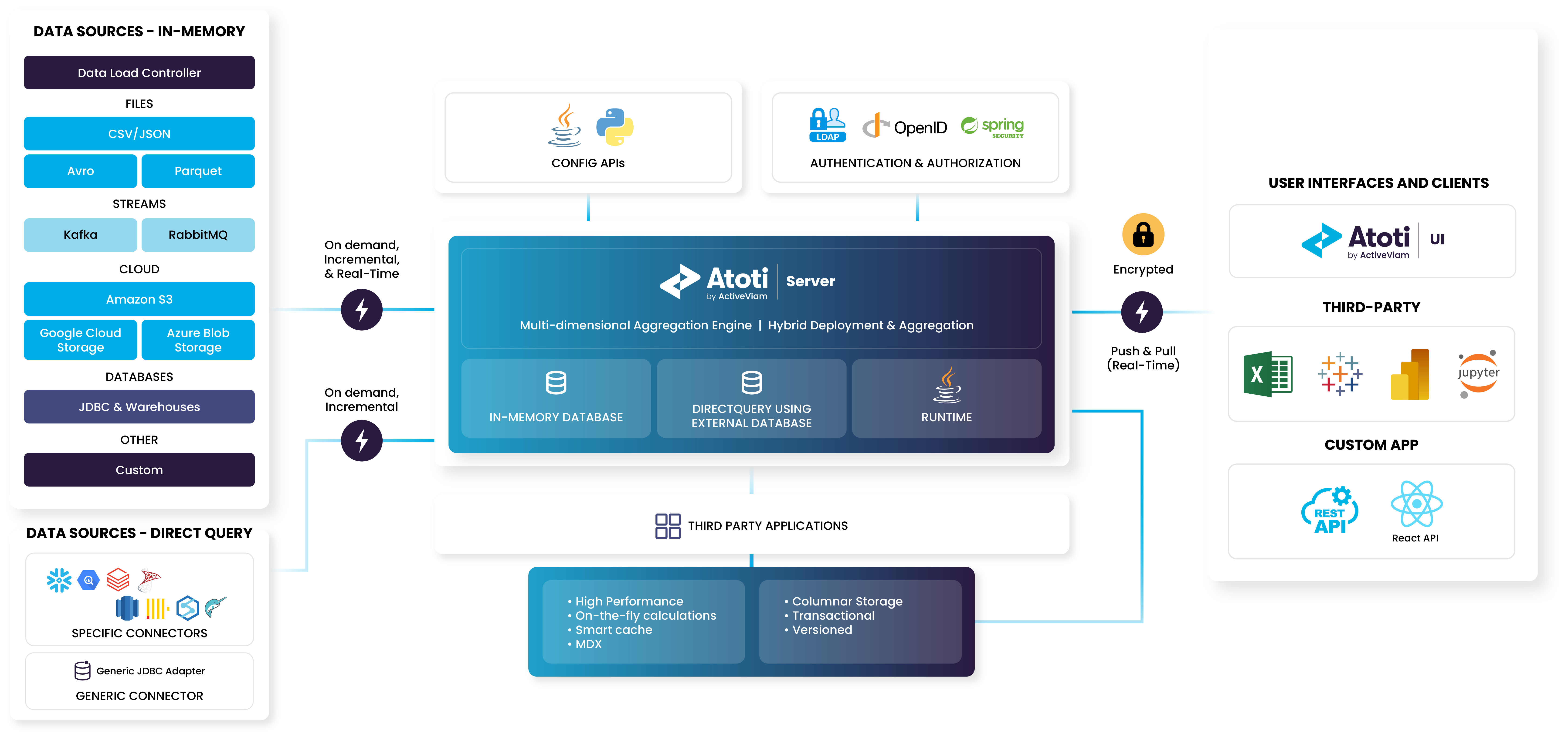 The Atoti query engine learns from user interactions to optimize itself continuously. By employing machine learning algorithms such as hierarchical agglomerative clustering, Atoti classifies runtime queries and recommends the best configurations for aggregate caches, partitioning, and other tuning parameters. This self-optimizing capability enhances performance and ensures faster, more efficient data retrieval.